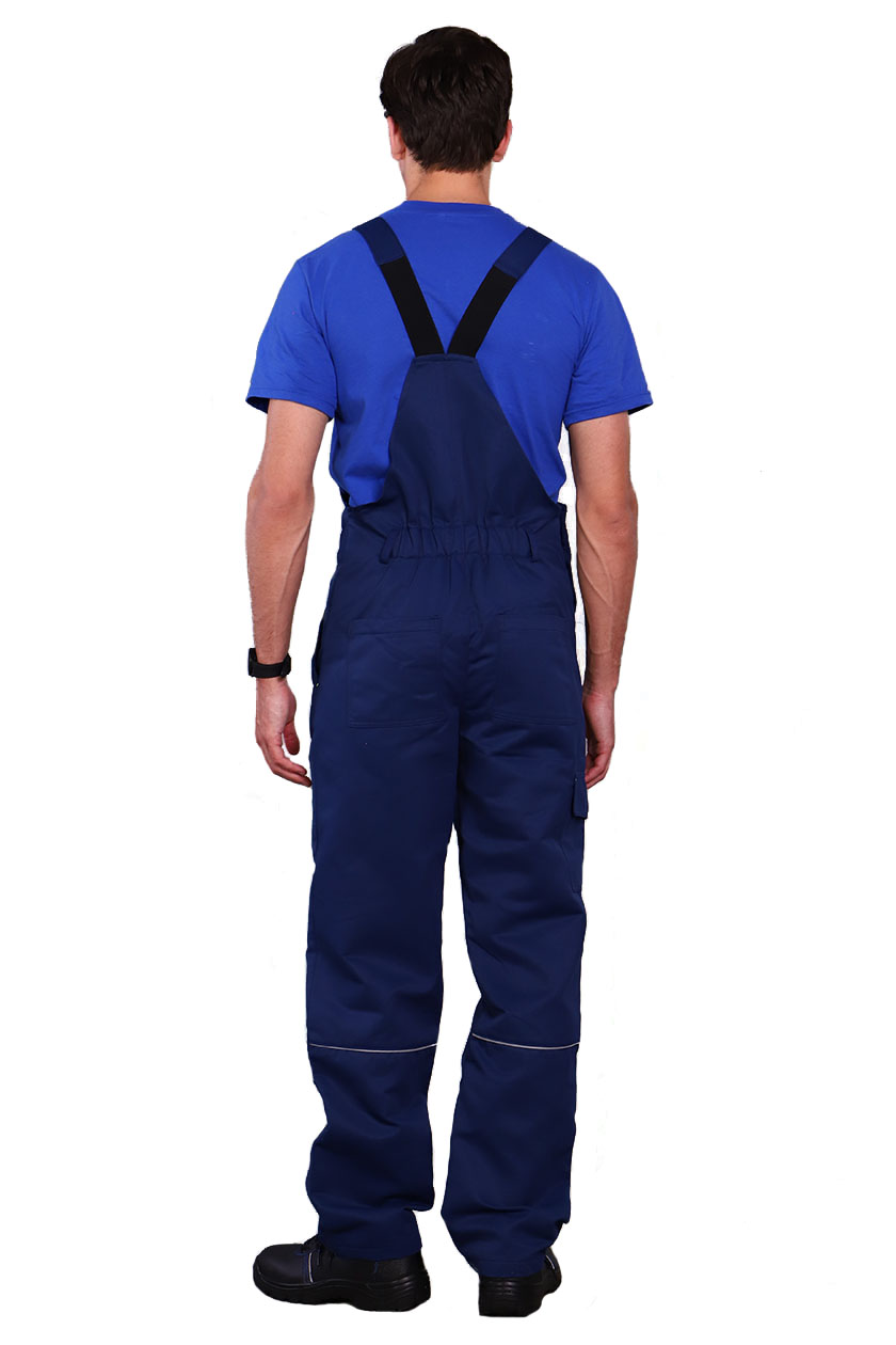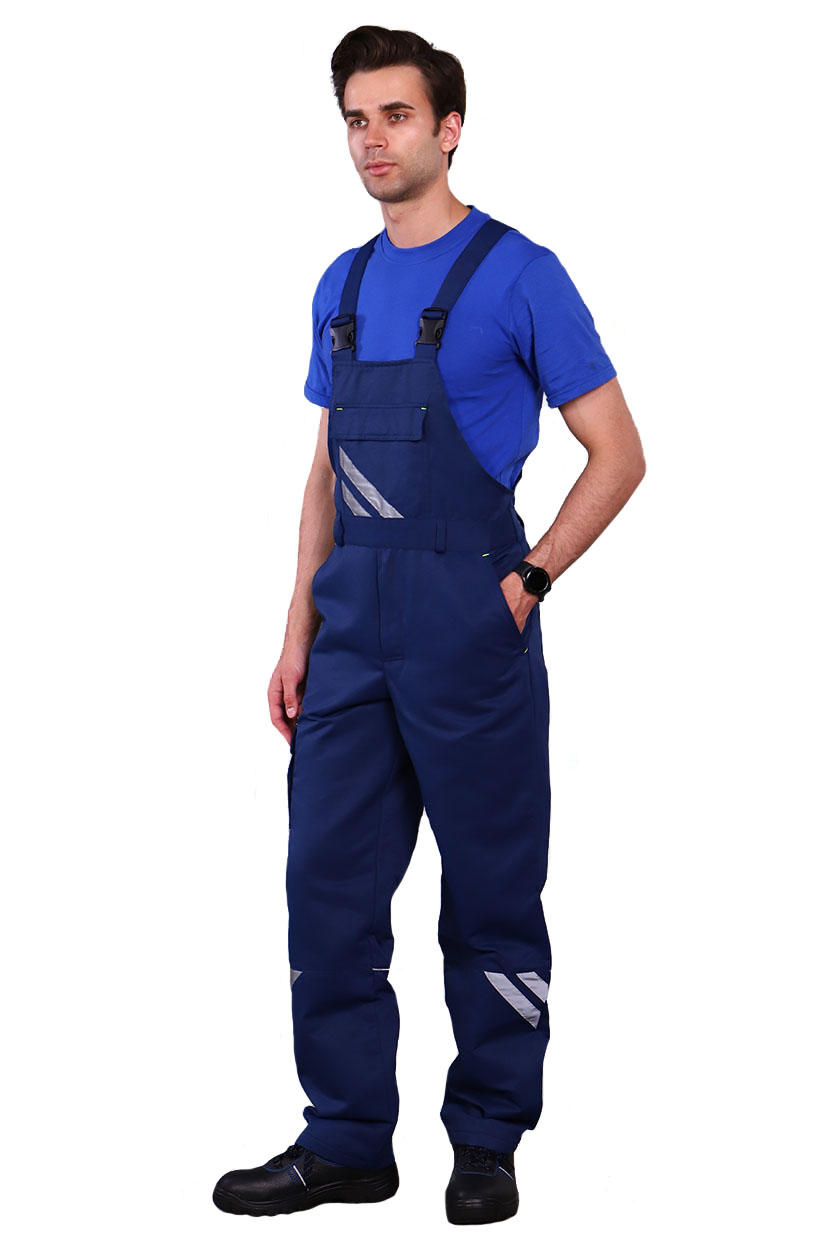 ➠ Полукомбинезон с застежкой в правом боковом шве на пуговицы, гульфик на «молнию». На грудке накладной карман с клапаном, на правом бедре объемный карман с клапаном.